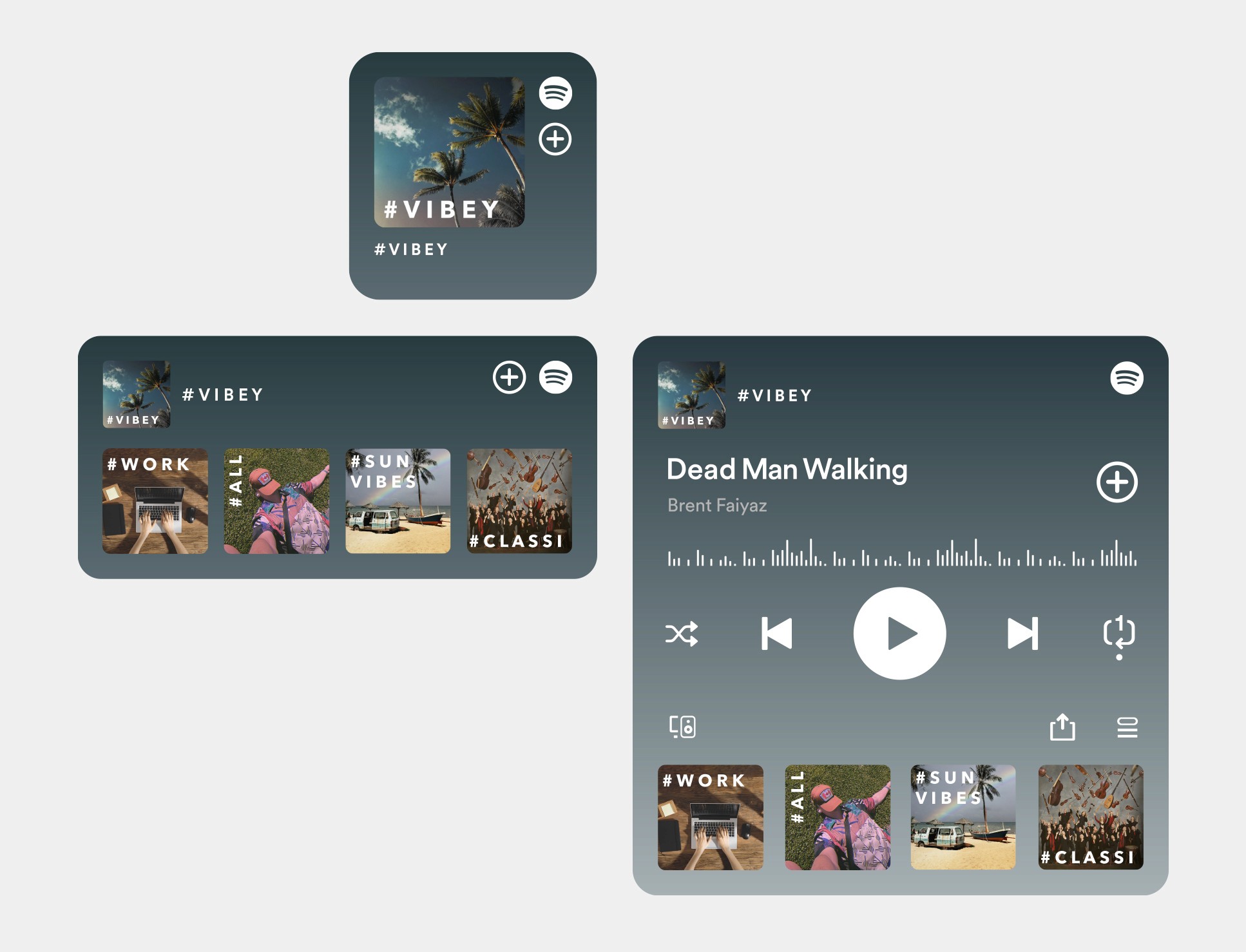 Ein spekulatives Redesign-Konzept – wie könnte das Spotify Widget aussehen, wenn es wirklich als Musik-Steuerzentrale auf dem Homescreen funktioniert?